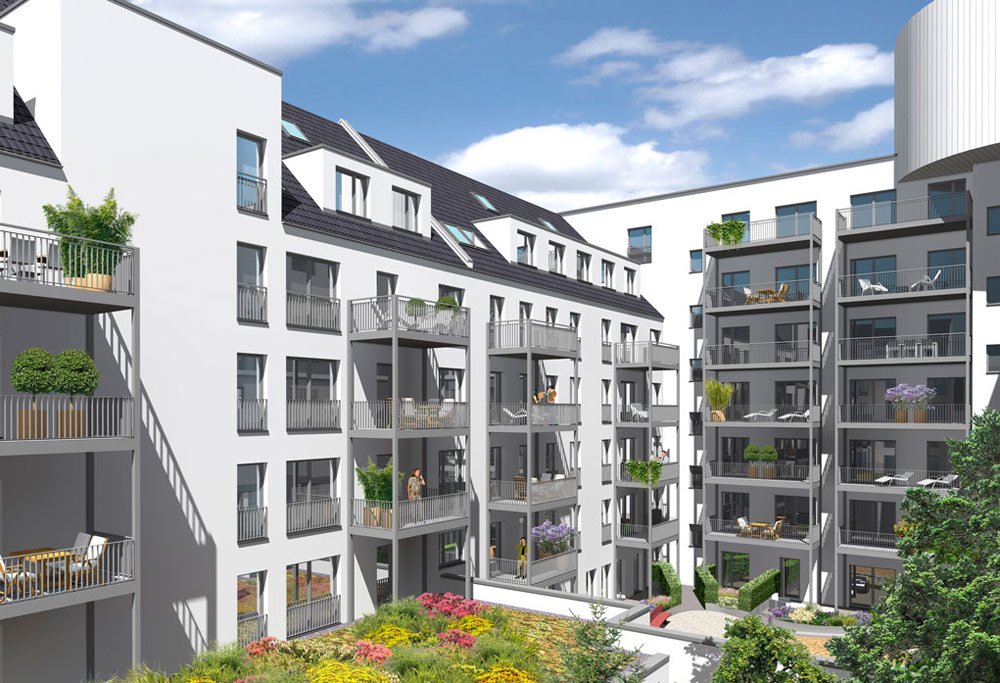 Neubauobjekte Köln mit gepflegter Rasenfläche